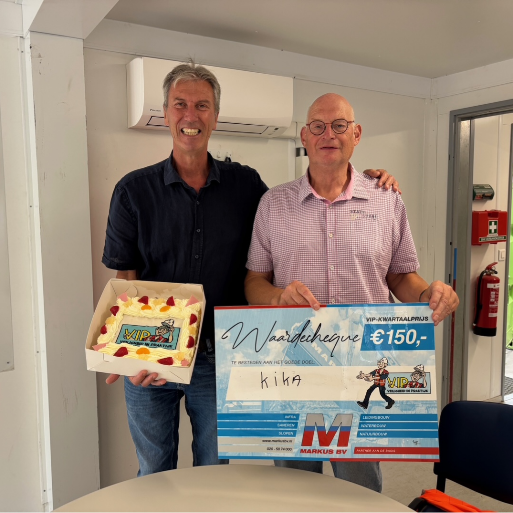 Naast eeuwige roem en een heerlijke slagroomtaart voor het projectteam, mag René ook een donatie van €150 doen aan een goed doel naar keuze. Zijn keuze viel direct op Stichting KiKa, voor onderzoek naar en genezing van kinderkanker.