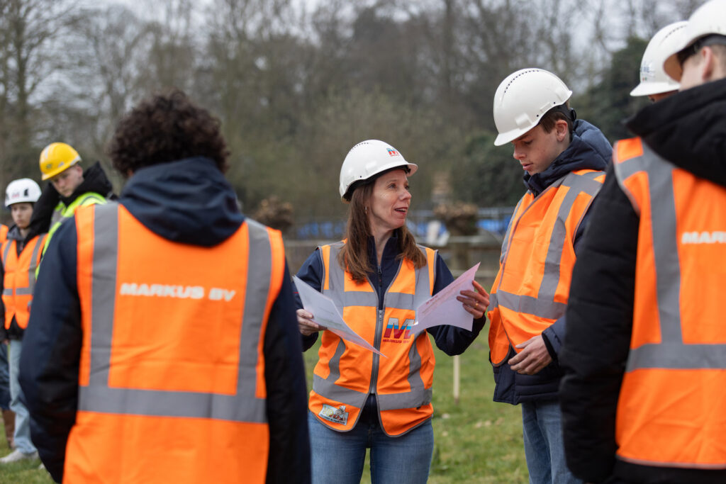 Sandy: “Vandaag was het zo ver: alle 16 groepen van basisschool KC Wheermolen in Purmerend namen deel aan onze Civiele Dag! Deze dag stond in het teken van de integrale rioolvervanging in de wijk Wheermolen, een project in uitvoering dat in de eerste fase langs basisschool KC Wheermolen loopt. Om de leerlingen meer bij het project te betrekken en ook om ze iets bij te brengen over onze branche, hebben we in het plan van aanpak bij aanbesteding met gemeente Purmerend aangegeven een ‘Civiele Dag’ te organiseren bij deze basisschool. Een schot in de roos! Met nieuwsgierige leerlingen gingen we uitgebreid op projectbezoek. Onze vakmannen lieten de kinderen ons dagelijks werk zien. Ook kregen de kinderen tijdens de Civiele Dag uitleg over de dode hoek bij een vrachtwagen, bouwden ze een eigen rioolaansluiting en een solide papieren brug. En tenslotte konden ze met kleine kraantjes en kruiwagens graven in de zandbak. Een mooie eerste kennismaking met de branche… en met Markus!”