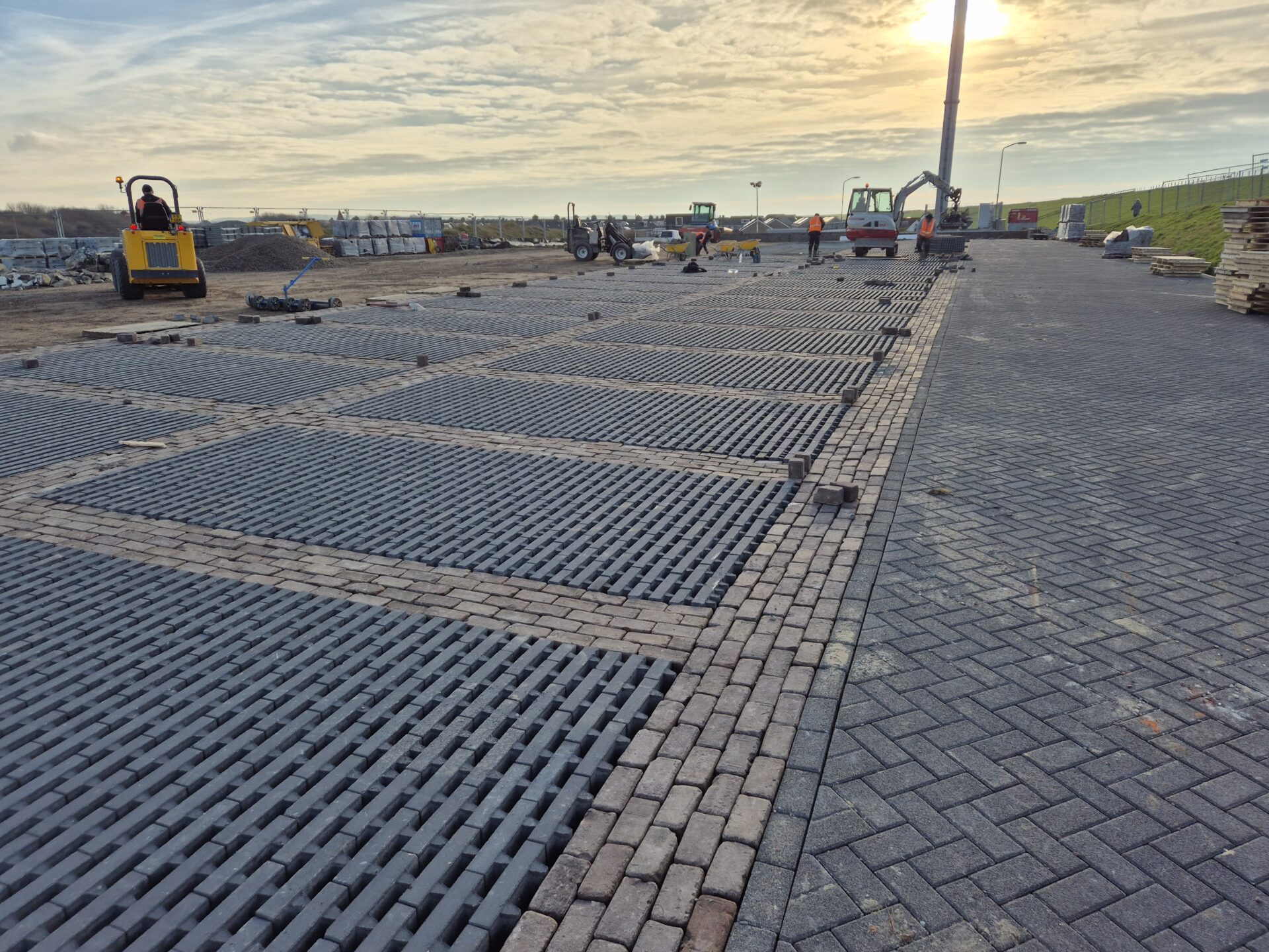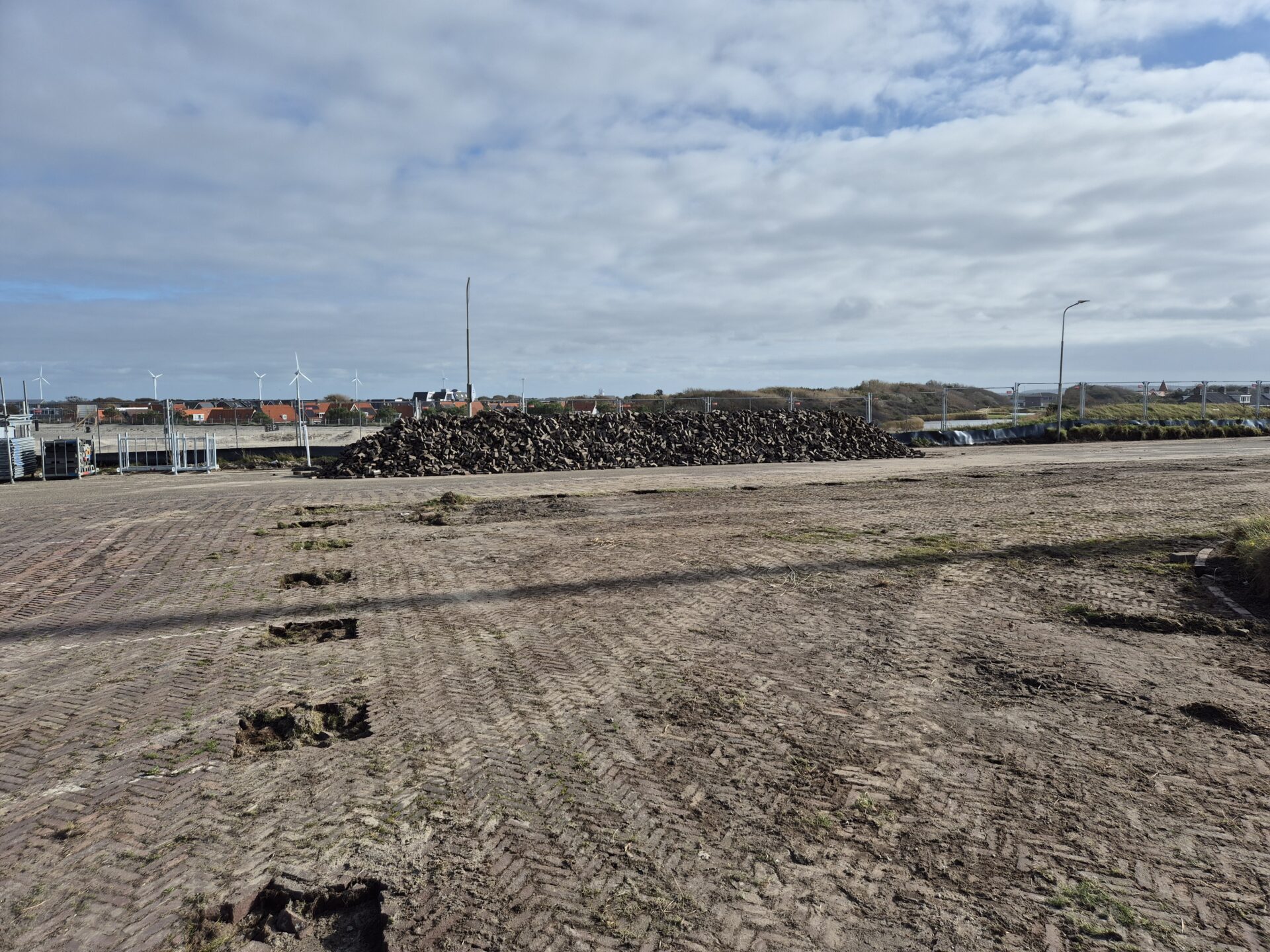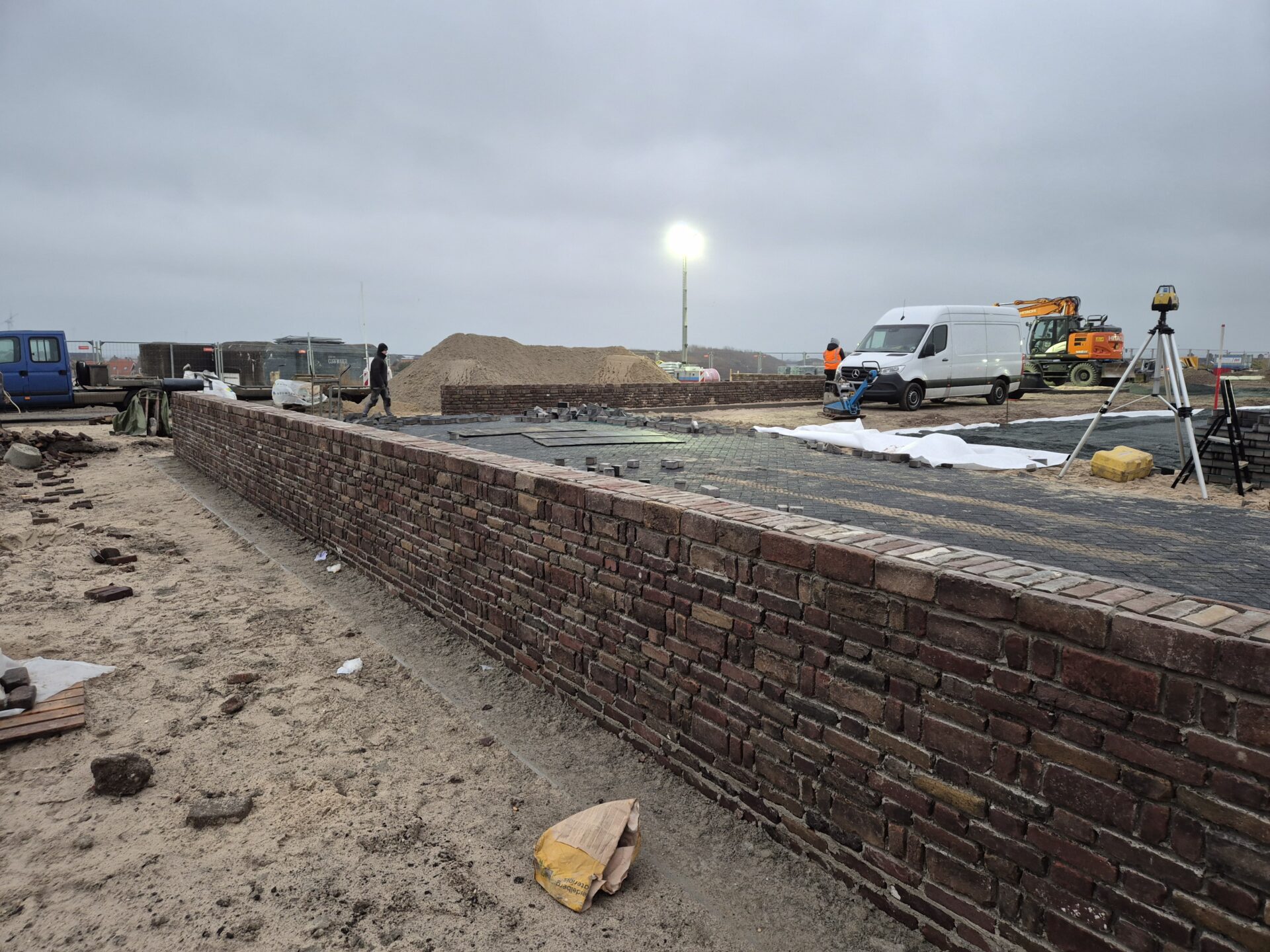 Het terrein is inmiddels opnieuw geprofileerd en volgens ontwerp op vorm, hoogte en helling aangelegd. ”Begin 2026 ronden we het straatwerk van het parkeerterrein af. Daarna volgen de aanleg van betonverhardingen en de aanplant van helmgras.”
