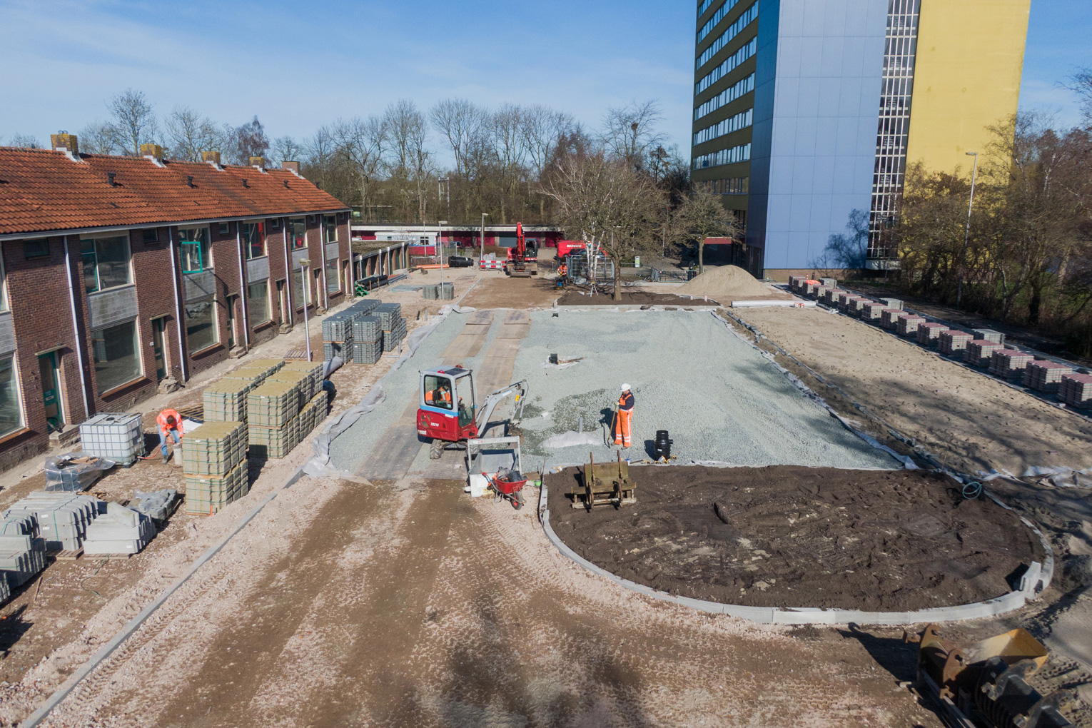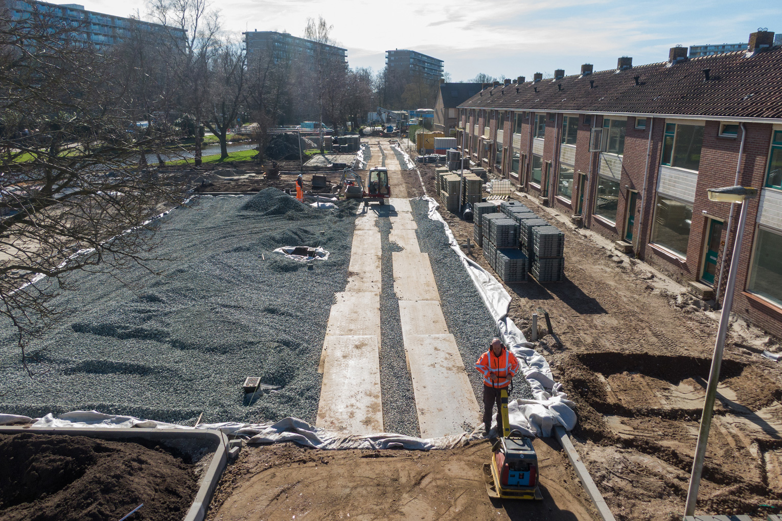“De ontwikkeling van de waterbergende weg is een goed voorbeeld van constructieve samenwerking tussen gemeente en marktpartij,” vindt Ewald. “Voor Purmerend is dit een nieuwe toepassing. In de voorbereidende fase stelden we onszelf de vraag: hoe pakken we dit aan zodat het waterbergende systeem niet vervuild in de opbouwfase en maximaal functioneert in de beheerfase. Dit resulteert in een procesmatige aanpak in de uitvoering waarbij het waterbergend materiaal zorgvuldig wordt verwerkt. We hebben het project aanbesteed met de expliciete vraag welke aannemer hiervoor een slimme en duurzame oplossing kon bieden. Markus presenteerde een doordacht plan op basis van de eerdere ervaring, met daarbij een efficiënte en gefaseerde verwerking van de waterbergende opbouw onder de verhardingen. Daarmee won Markus onder andere de opdracht.”